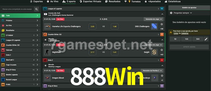A aposta 888Win oferece aos jogadores a experiência mais conveniente de apostas em eSports!